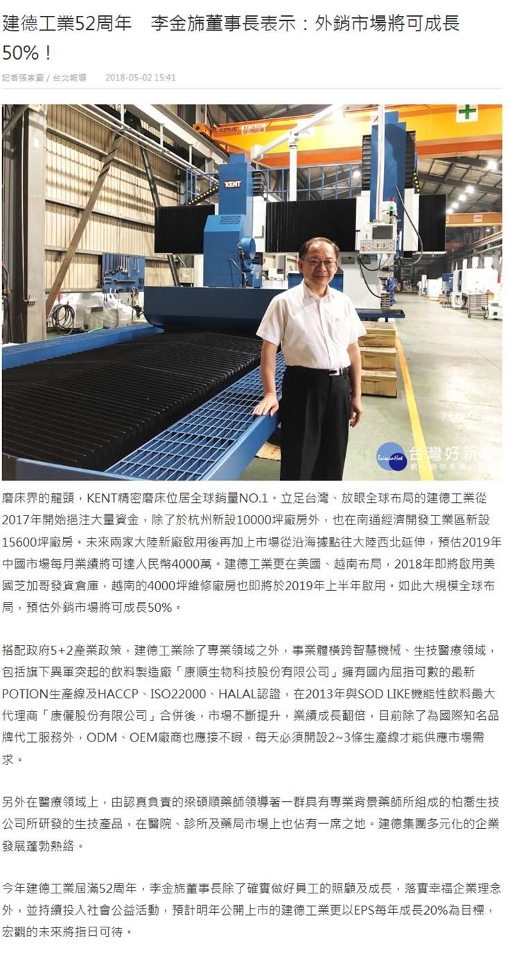 建德工業52周年 李金旆董事長表示:外銷市場可增長50%